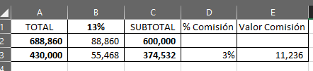 Paso 3: Restamos al valor abonado la parte correspondiente de los impuestos, es decir: 430.000-55.468 = 374.532; este último valor corresponde a la base para calcular la comisión.Paso 4: A la base de comisión se multiplica por el % correspondiente de comisión, es decir: 374.532 x 3% = 11.236.